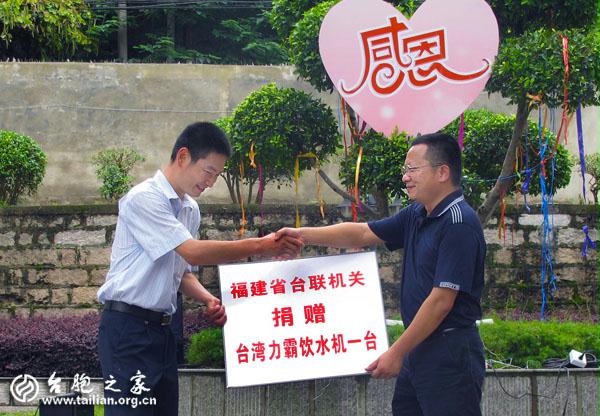省臺(tái)聯(lián)張巖秘書(shū)長(zhǎng)代表臺(tái)商贈(zèng)送掛扇三十臺(tái) 卓高翔/攝影