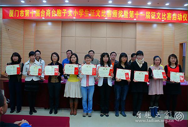 臺(tái)胞之家網(wǎng)訊:3月30日,由廈門(mén)市教育局、廈門(mén)市臺(tái)聯(lián)、廈門(mén)市臺(tái)商投資企業(yè)協(xié)會(huì)聯(lián)合主辦,廈門(mén)市臺(tái)聯(lián)承辦的第十屆廈門(mén)市小學(xué)臺(tái)商子女、臺(tái)胞子女征文比賽頒獎(jiǎng)儀式暨第十一屆征文比賽啟動(dòng)儀式在廈門(mén)市團(tuán)結(jié)大廈隆重舉行。