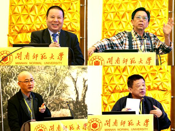 開幕式后,進入“專家主題演講”環(huán)節(jié)。王耀華教授、蔡欣欣教授、鄭長鈴研究員、陳耕編劇、曾學(xué)文編劇、陳彬作曲家等六位主講嘉賓分別作了題為《情·詞·腔·格——邵江海“改良調(diào)”創(chuàng)作論》、《以資深藝人為師 再現(xiàn)看家戲精華》、《從非物質(zhì)文化遺產(chǎn)再創(chuàng)造看邵江海及其改良調(diào)》、《傳統(tǒng)文化的創(chuàng)造性轉(zhuǎn)化和創(chuàng)新性發(fā)展——我們向邵江海學(xué)什么》、《為什么要對邵江海進行記錄保存與研究》、《邵江海雜碎調(diào)的時代精神》的主題演講。