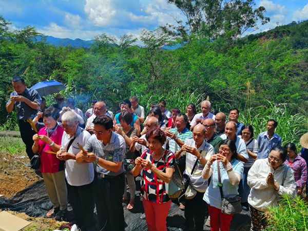 2019年6月29日,在那個氣溫高達34度的日子里,臺灣宜蘭張氏宗親一行30人在福州臺商張傳來、上海臺商張明正的倡議和帶領下,來到詔安秀篆北坑村尋根謁祖。張傳來第一次來到詔安尋根是在十多年前。當初只拿著兩張族譜的復印件,說祖籍是詔安,族譜標明一世祖祖墓的墓碑名字和墓的座向。我多次前往秀篆尋找張氏族譜對接,終于幫助張先生找到了張氏一世祖祖墓。張先生聽到這個好消息,便興高采烈的再一次來到詔安,來到祖墓前祭拜。此后的每個清明,張先生都會帶著家人來到詔安祭祖。一年又一年,聽聞這個消息的張氏宗親越來越多,尋根的隊伍不斷壯大,在這一年更是達到了30人之多。越來越多的臺灣宗親認識到他們的根在大陸,感受到兩岸血脈相連的親情。