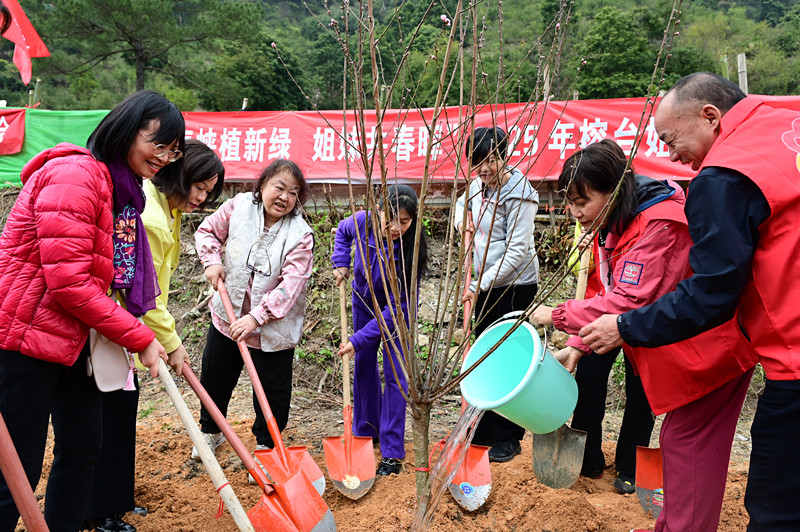 三月的閩侯荊溪鎮(zhèn),草木蔓發(fā),春潮涌動。3月11日,一場以“海峽植新綠 姐妹共春暉”為主題的植樹活動在桃田村火熱展開。