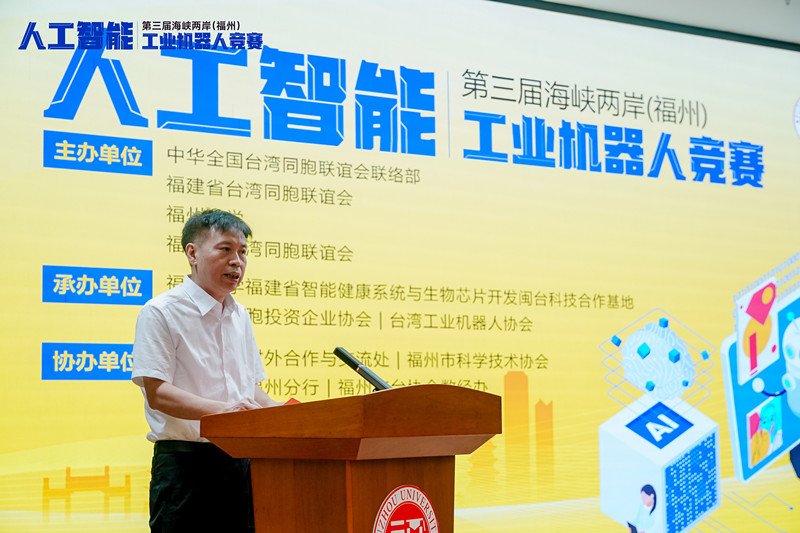 7月12日,以“智創(chuàng)未來 融通兩岸”為主題的第三屆海峽兩岸(福州)人工智能——工業(yè)機(jī)器人競(jìng)賽在福州大學(xué)旗山校區(qū)舉辦。福建省臺(tái)聯(lián)黨組書記劉良輝,福州大學(xué)黨委常委、副校長楊黃浩,福州市臺(tái)聯(lián)會(huì)長楊軍,福州市臺(tái)協(xié)會(huì)會(huì)長蔣佩琪以及臺(tái)灣嘉賓、裁判組、參賽隊(duì)伍師生等200余人出席活動(dòng)。