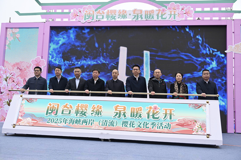 2月21日,在精彩紛呈的文藝表演中,2025年海峽兩岸(清流)櫻花文化季在清流賴坊櫻花園隆重開幕。全國臺聯(lián)會長鄭建閩、全國臺聯(lián)聯(lián)絡(luò)部部長任揮、福建省臺聯(lián)黨組書記劉良輝、上海市臺聯(lián)黨組書記李海泳、福建省海外聯(lián)誼會副會長李文慎、福建省臺辦副主任翁云萍、三明市海外聯(lián)誼會會長黃冠華、清流縣委書記吳鐘民、清流縣縣長莫彩華、三明市臺辦主任朱昶凱、三明市臺聯(lián)會長沈杰等出席開幕式。