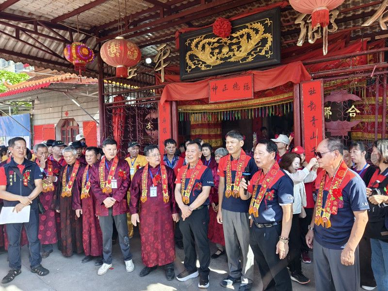 當(dāng)日上午,進(jìn)香團(tuán)抵達(dá)港頭村鐘靈祖廟。9時,團(tuán)拜儀式正式啟動,彰化進(jìn)香團(tuán)全體成員恭讀疏文,祈求平安。港頭村鐘靈祖廟管委會成員與參訪團(tuán)共同祭拜,并就民俗文化傳承展開深入交流。