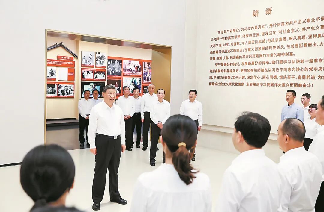 7日下午,習(xí)近平來(lái)到位于梅州市梅縣區(qū)雁洋鎮(zhèn)的葉劍英紀(jì)念園。在葉劍英紀(jì)念館,習(xí)近平向葉劍英銅像敬獻(xiàn)花籃,參觀葉劍英生平事跡陳列。隨后,又參觀葉劍英故居。習(xí)近平強(qiáng)調(diào),我們今天取得的偉大成就,都是建立在毛澤東等老一輩革命家打下的江山、攢下的家底之上的。要結(jié)合黨史宣傳教育,講好老一輩無(wú)產(chǎn)階級(jí)革命家的故事,教育引導(dǎo)廣大干部群眾特別是青少年傳承紅色基因、賡續(xù)紅色血脈,永遠(yuǎn)聽黨話、跟黨走。